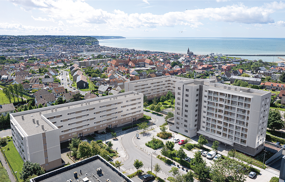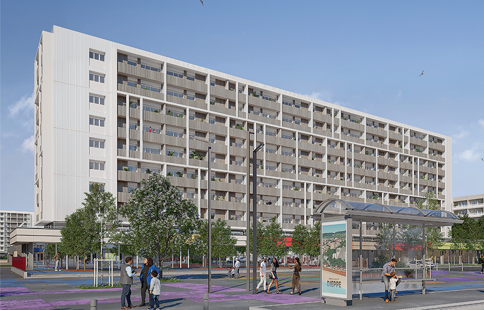 La réhabilitation thermique des 1062 logements répartis sur 20 bâtiments à NEUVILLE-LES-DIEPPE représente un projet de grande envergure visant à transformer un secteur urbain emblématique des années soixante. Cette diversité architecturale nous a conduits à élaborer cinq concepts architecturaux distincts, esthétiquement reconnaissables, fusionnant les styles de la fin des années soixante avec ceux de l’architecture contemporaine.