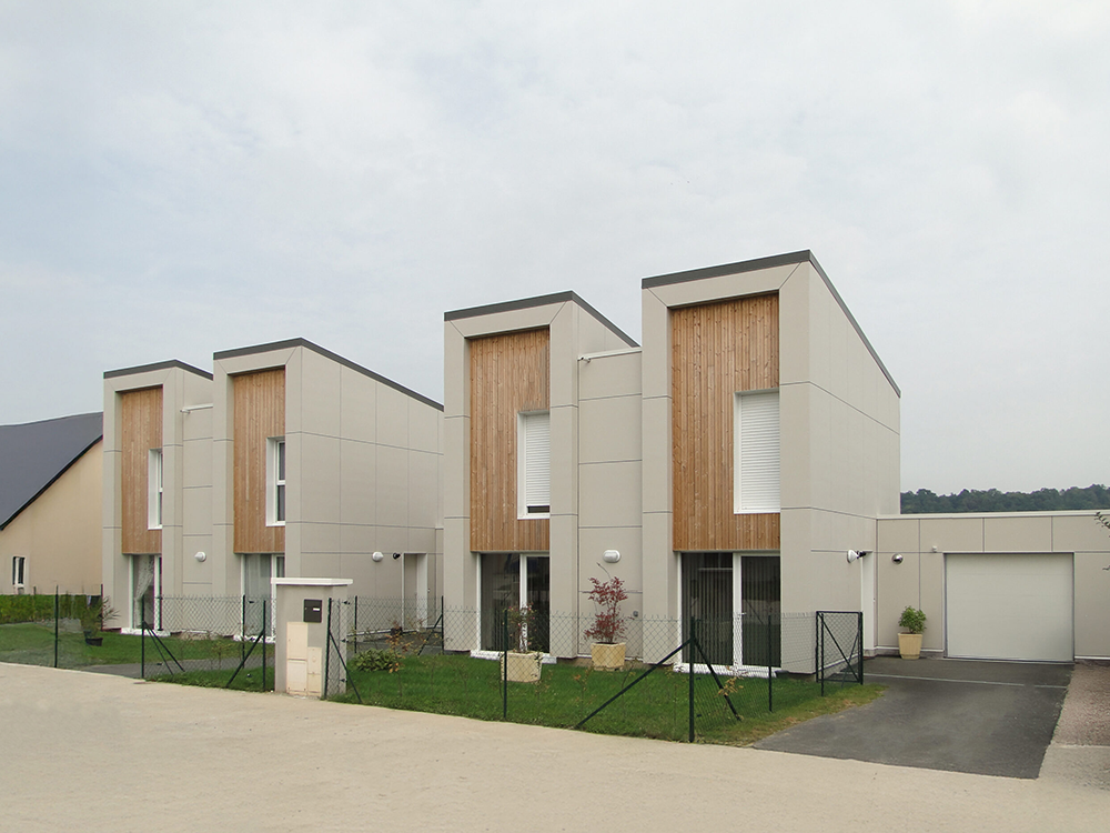 Le programme de logements consiste en la construction de huit logements individuels et de quatre logements intermédiaires, implantés sur cinq terrains en forte déclivité au sein d’un lotissement de maisons individuelles situé à Pont-Audemer.
